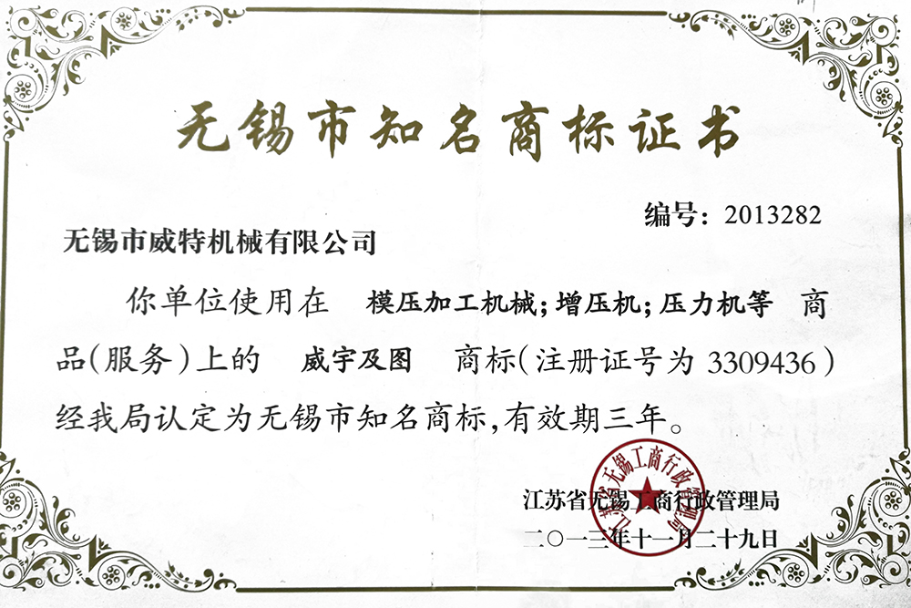 無(wú)錫市知名商標(biāo)證書(shū)