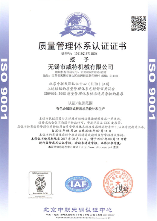 經(jīng)過(guò)研發(fā)團(tuán)隊(duì)多年來(lái)的努力,多個(gè)產(chǎn)品取得了高新技術(shù)產(chǎn)品榮譽(yù)稱(chēng)號(hào)。公司研發(fā)團(tuán)隊(duì)人員堅(jiān)持不斷創(chuàng)新,將新技術(shù)運(yùn)用于產(chǎn)品中,現(xiàn)有多個(gè)項(xiàng)目研發(fā)中。 公司視產(chǎn)品質(zhì)量為生命,從原材料開(kāi)始嚴(yán)格控制質(zhì)量,過(guò)程中每一道工序的檢驗(yàn)都有記錄,并通過(guò)了ISO9001質(zhì)量體系認(rèn)證,以過(guò)硬的質(zhì)量確保出廠(chǎng)的產(chǎn)品... 二十多年來(lái),我們所生產(chǎn)的2000余臺(tái)擠壓機(jī)暢銷(xiāo)國(guó)內(nèi)及世界各地,如 法國(guó)美泰樂(lè)公司、美國(guó)UAC公司(波音、空客飛機(jī)主要型材供應(yīng)商)、德國(guó)優(yōu)美科、阿聯(lián)酋、巴西、阿根廷、土耳其、越南、墨西哥等。 公司以?xún)?yōu)質(zhì)完善的服務(wù)為客戶(hù)的滿(mǎn)意提供了保障,我們將想用戶(hù)之想,超用戶(hù)之想,不斷提高服務(wù)品質(zhì)。